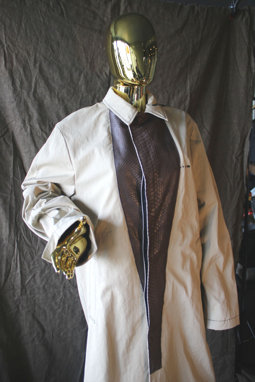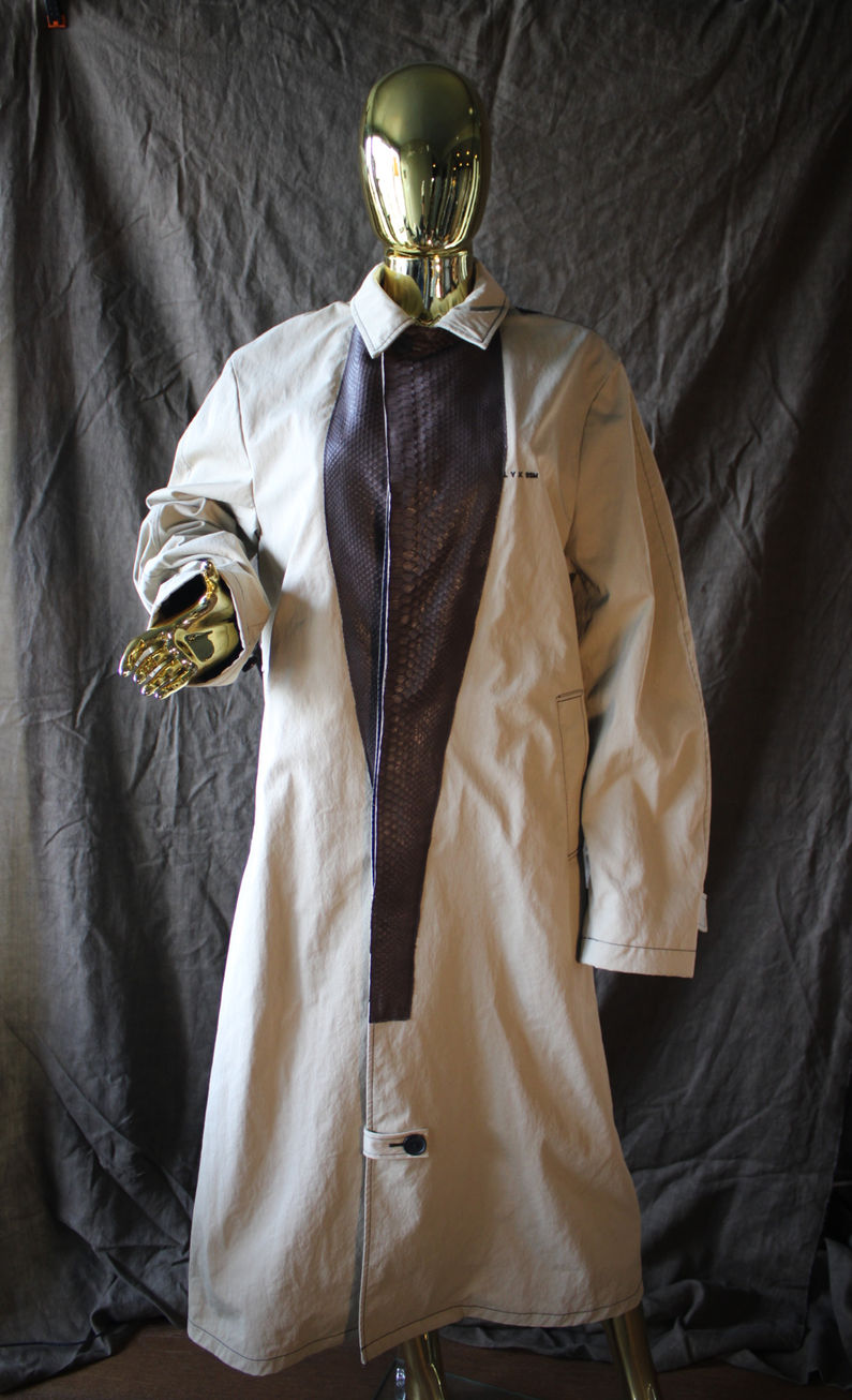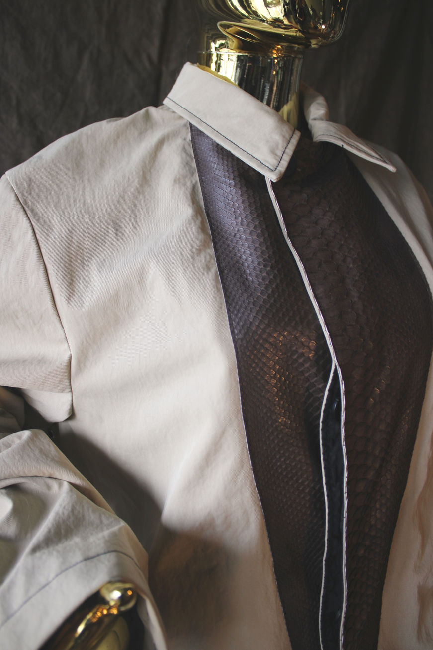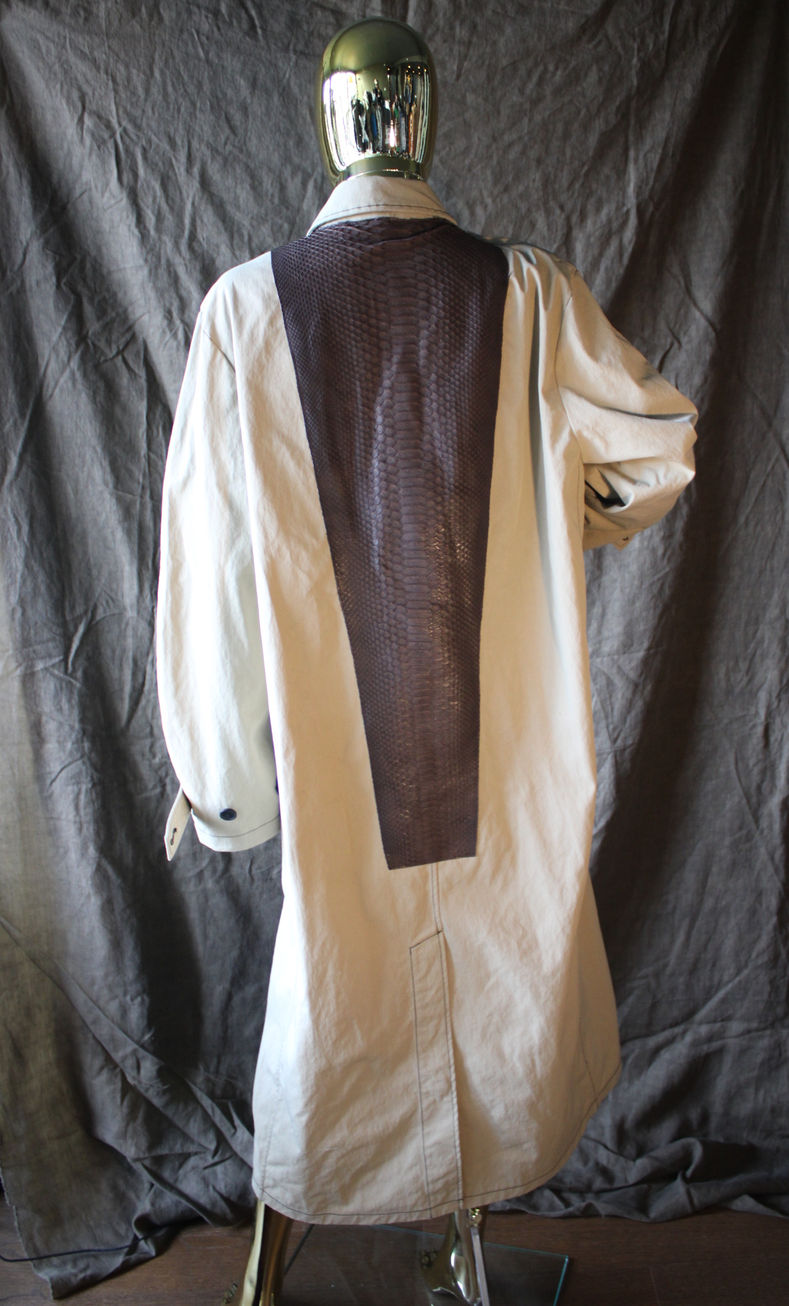 This beige long coat exudes sophistication with a touch of exotic luxury. Crafted from high-quality materials, it features genuine python skin details that add a distinctive and bold accent. The structured cut enhances the silhouette, making it both elegant and stylish. Perfect for special occasions or adding a refined statement to any outfit, this coat blends timeless design with unique, high-end craftsmanship.